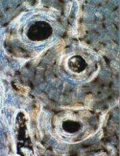 Mikroszkopikus felvétel a csontszövetről. A kutatásokban az első áttörést az egyik nagy német kollagénkészítményeket gyártó vállalat támogatásával a 80-as évek közepén folytatott klinikai kísérletek jelentették.